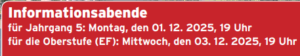 Wir laden zu zwei Infoabenden im PZ unserer Schule ein: Informationen für Eltern für den kommenden 5. Jahrgang am Montag, […]