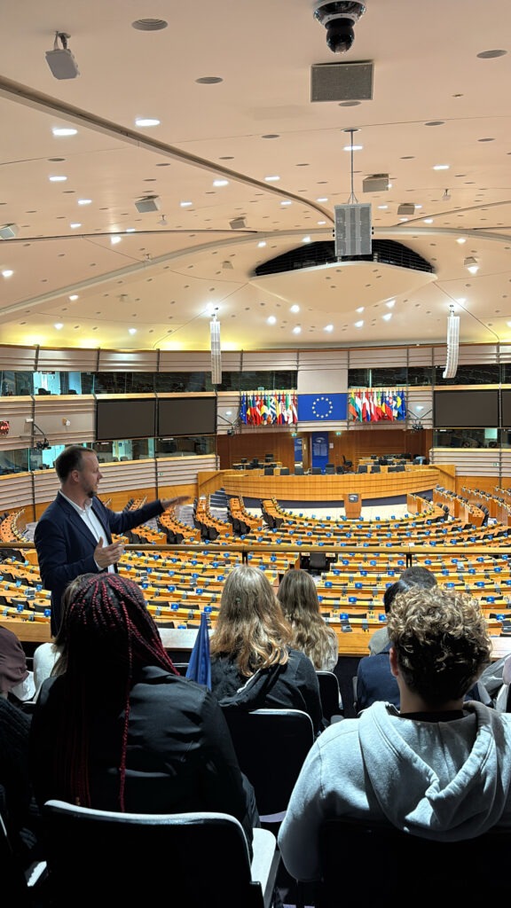 Am Donnerstag, den 02.10.2025, unternahmen Schülerinnen und Schüler der Q1 und Q2 gemeinsam mit Herrn Teke, Frau Yildirim und Frau Tasdemir die diesjährige Exkursion nach Brüssel. Zu Beginn stand ein spannender Austausch im Europäischen Parlament auf dem Programm – in diesem Jahr mit dem Abgeordneten der Partei Bündnis 90/Die Grünen, Herrn Daniel Freund. In einer offenen Gesprächsrunde konnten die Schülerinnen und Schüler ihre Fragen stellen und gewannen dabei interessante Einblicke in die Arbeit eines Europaabgeordneten. Dank einer persönlichen Führung durch Herrn Freund, bei der wir sogar auf die Tribüne des Plenarsaals durften, konnten wir Politik hautnah erleben. Wir bedanken uns herzlich für den freundlichen Empfang und die anregende Diskussion.