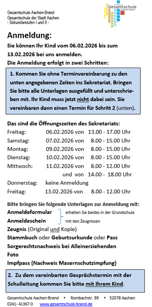 Sie können Ihr Kind vom 06.02.2026 bis zum 13.02.2026 bei uns anmelden.