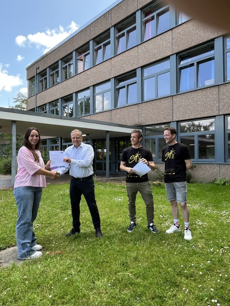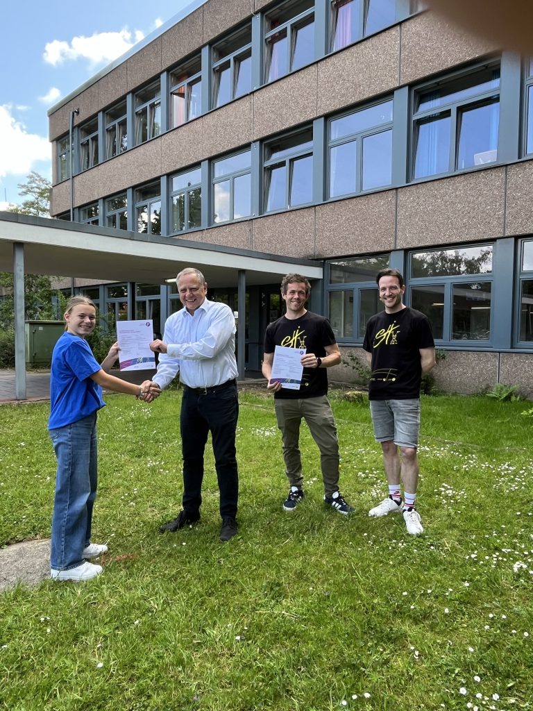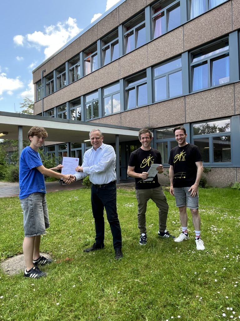 Wir gratulieren Jette (Kl. 9.1); Jan, Jonas und George (Kl. 9.3) sowie Hannah, Charlotte, Lotta und Sebastian (Kl. 9.6) zur Erlangung des Zertifikats als Sporthelfer*innen, welches sich sehr gut in Bewerbungsmappen und als Grundlage für Aktivitäten in (Sport-)Vereinen aller Art eignet.