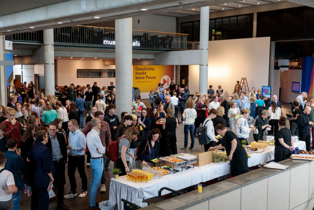 Der filmische Beitrag der 9.6 zum Thema „Grenzen in der Geschichte – Bis hierhin und nicht weiter“ wurde, unter der Leitung von Herrn Fabri, mit einem hochdotierten Landespreis ausgezeichnet. Die Preisverleihung fand dementsprechend in einem würdigen Rahmen mit einem tollen Empfang im Haus der Geschichte in Bonn statt. Die ehemalige Hauptstadt der Bundesrepublik zeigte sich an dem Tag zwar von ihrer verregneten Seite, das konnte der guten Laune und dem Stolz der Klasse von Frau Rabien und Herrn Fabri aber keinen Abbruch tun 😊