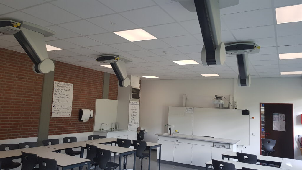 Unsere Schule verfügt neben den 8 Biologie-, Physik- und Chemiefachräumen über zwei NW-Räume, die mit modernsten Arbeitsplätzen ausgestattet sind. In diesen beiden Räumen erfolgt die Versorgung mit Gas und Strom an den Schülertischen über ein absenkbares System von oben und in einem dieser zwei Räume ersetzt ein Smartboard die Tafel.